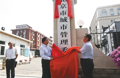 2016年7月28日,北京市城市管理委员会正式挂牌。在保留原市政市容委职能范围的同时,将多个其他部门与城市运行管理相关的职责一并划入。新京报记者 浦峰 摄