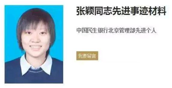 共产党员网上一份对张颖的公示材料显示,张颖为当年的“中国民生银行北京管理部先进个人”。