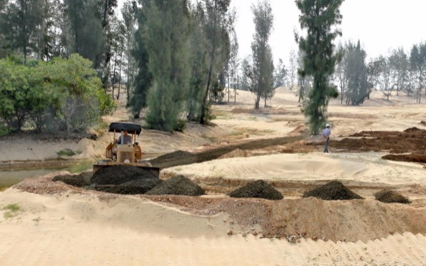 去年4月份,《青年报》摄影记者通过航拍拍下了该省图伊华市(Tuy Hoa City)海岸线上覆盖有20米高的澳大利亚松树。这些树木形成了沿海森林,保护该市不受沙尘和海洋强风的影响。然而,一年以后,《青年报》记者再访该地时却吃惊地发现森林不见了,取而代之的是高尔夫球场施工场地和工人。