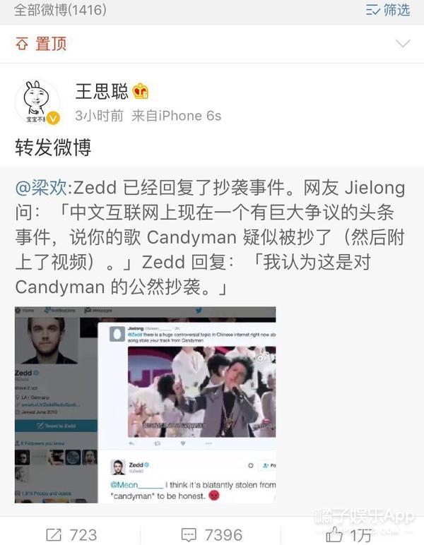 他跟黄子韬的“恩怨”由来已久,最初是nili韬韬在某档节目表演Rap,有博主说:“听完黄子韬的rap,明白了什么叫做节奏跟不上说唱,字幕跟不上节奏”,于是王思聪就转发这条微博,表示↓