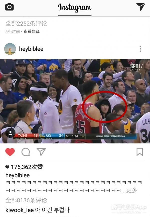 2月,李圣经在国外的一场球赛现场找到了观众席上的南朋友,还特地发了照片