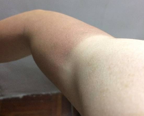 两条手臂直接暴露在阳光下