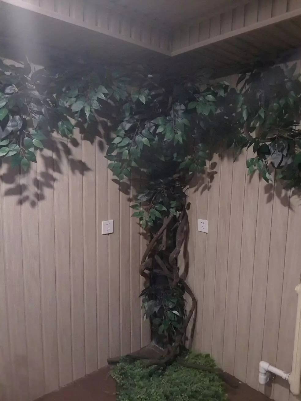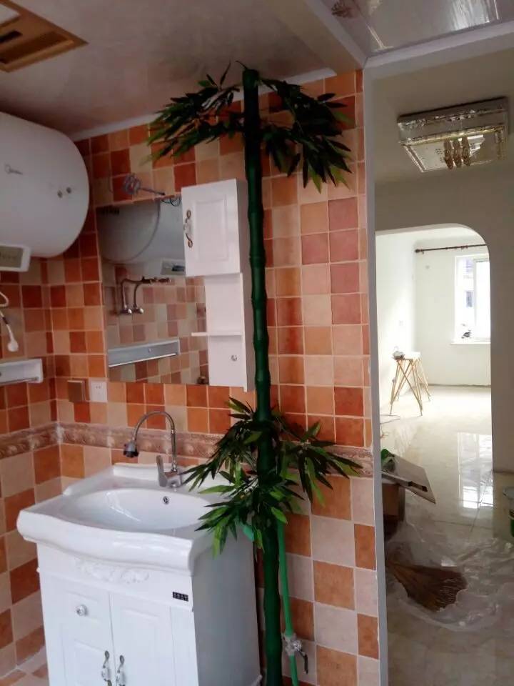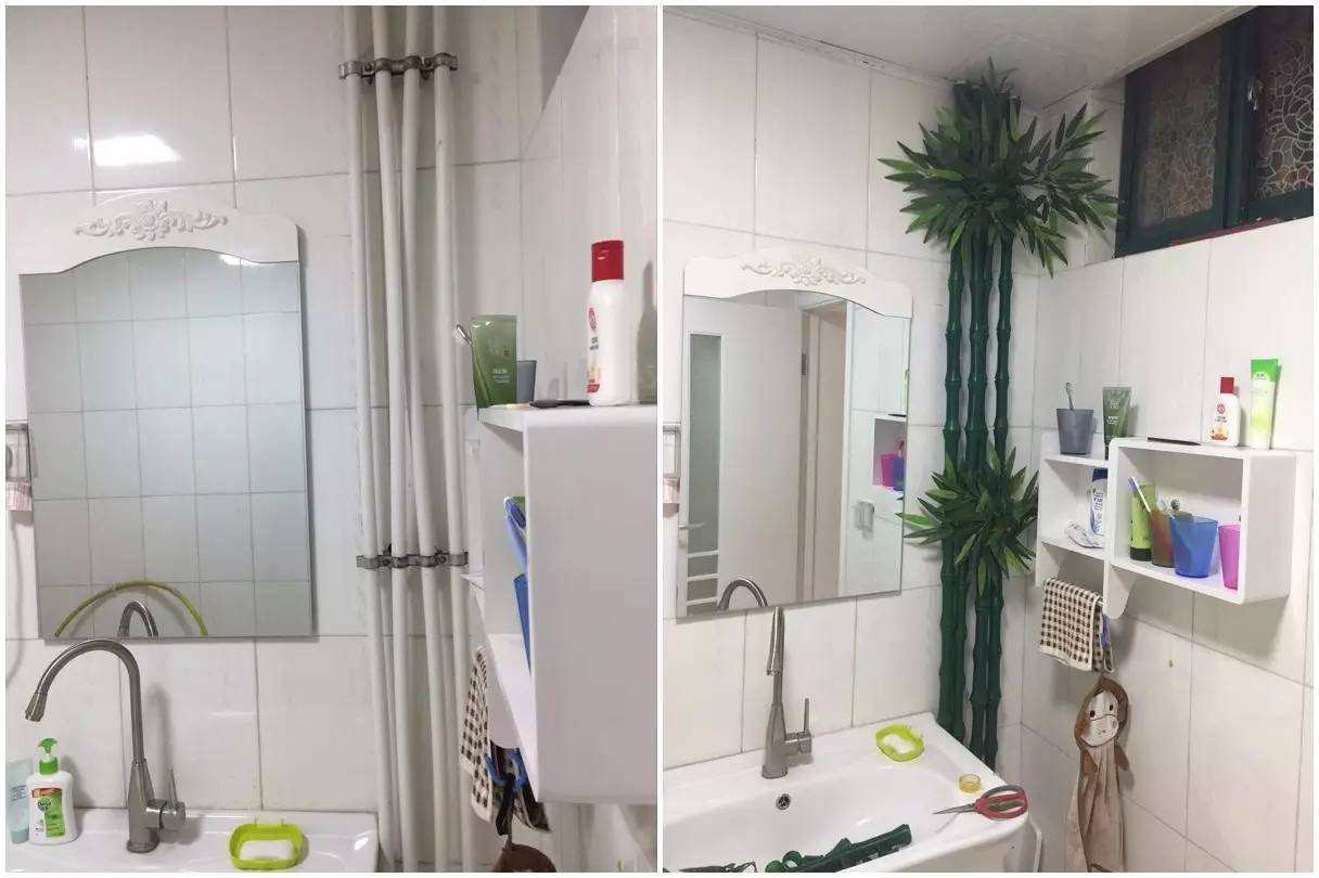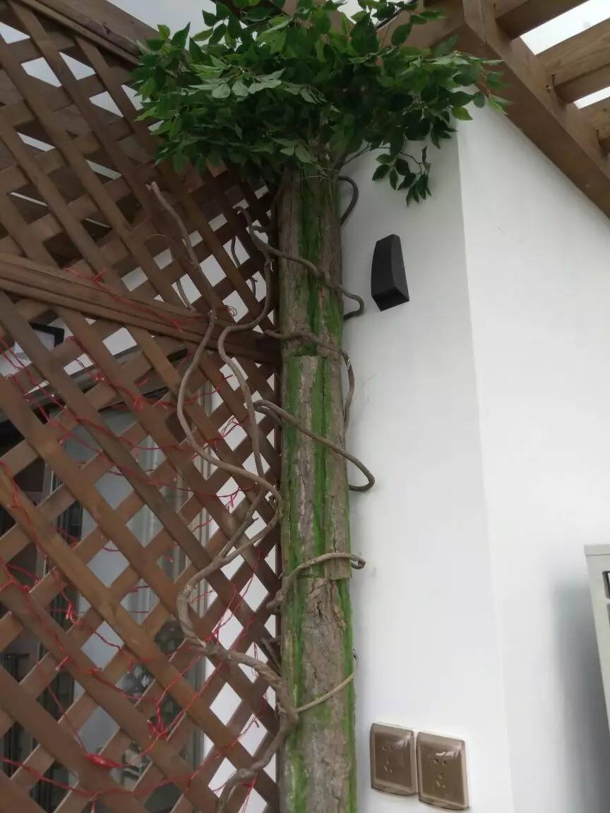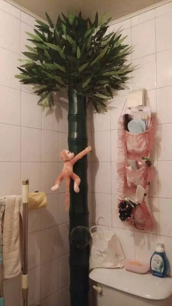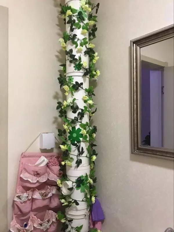 下水管常见于阳台、卫生间,这些管道可以用绿植或假树造型来装饰遮挡美化;