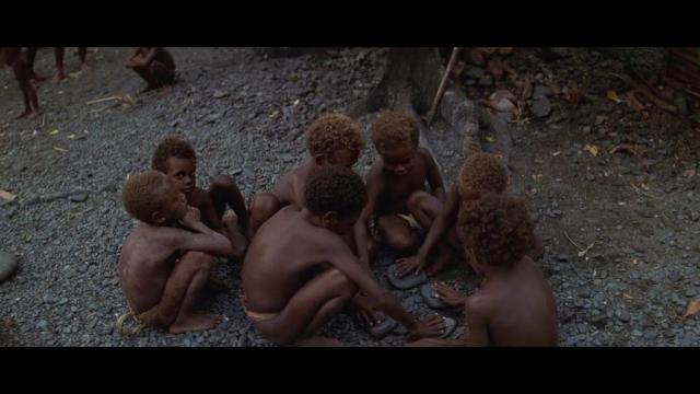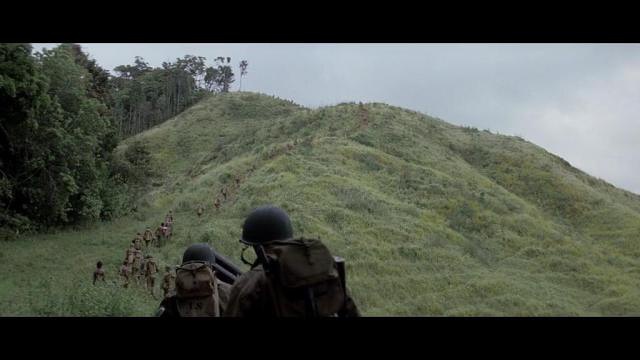 虽说此片讲述的是太平洋战争瓜岛战役中的一场阵地争夺战,但有接近三分之一的镜头放在自然景观和静物上面。影片刚开始,马利克就耗费了许多胶片拍摄鳄鱼下水,紧接着他又用缓慢的镜头向我们展示了美拉尼西亚土著人民世外桃源般的静谧生活,不知情的观众恐怕还以为自己在看《人与自然》或《探索》(Discovery)呢。