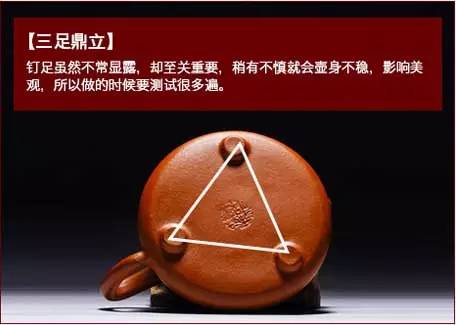 点、线、面,是构成紫砂壶形体的基本元素,在紫砂壶成型过程中,必须交代的清清楚楚,犹如工笔绘画一样,起笔落笔、转弯曲折、抑扬顿挫,都必须交待清楚。面须光则光,须毛则毛;线,须直则直,须曲则曲;点,须方则方,须圆则圆,都不能有半点含糊。否则,就不能算是一把好壶。按照紫砂壶成型工艺的特殊要求来说,壶嘴与壶把要绝对在一直线上,并且分量要均衡;壶口与壶盖结合要严禁。这也是“工”的要求。