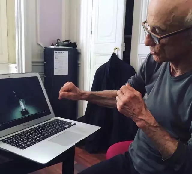 拉维耶就住在第戎。据说如今身体不太理想,似乎还挺严重,但是完全看不出来。在布展现场,以及开幕当天,他像拳击运动员一样活跃。他笑起来的时候,侧面很像毕加索。