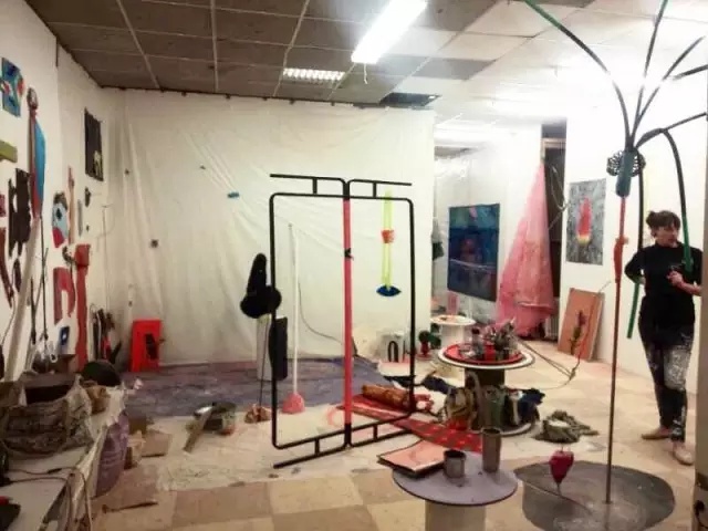 在第戎当代艺术中心的布展现场,右边是拉维耶