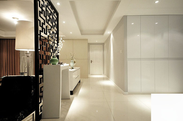 宽敞简洁的走廊,装了很多的氛围射灯,衬托出一种明亮大方的效果;