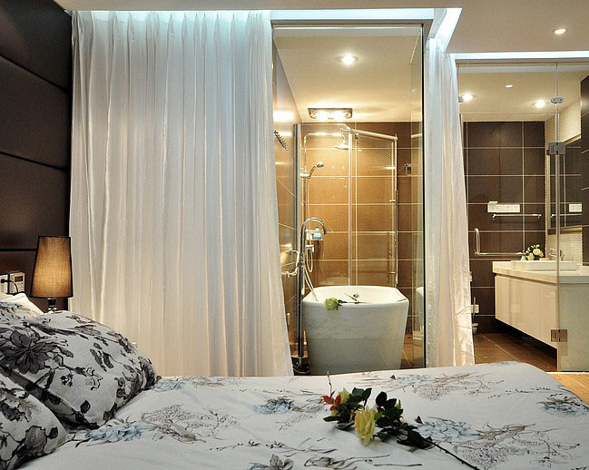 隔着一层拉帘,主卫的浴缸正是主人忙碌一天后最舒适的享受;
