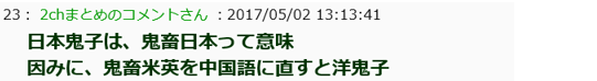 日本鬼子有鬼畜日本的意思。顺便说一句,鬼畜美英翻译成中文是洋鬼子