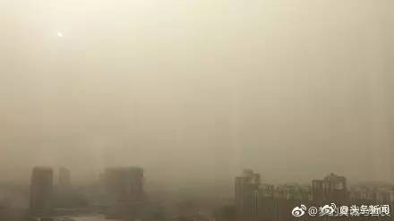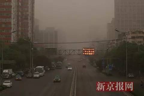 北京多地出现沙尘天气。图片来自新浪微博“头条新闻”