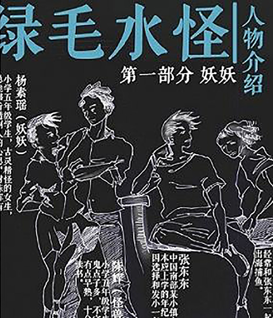 数年后,“怪物”再次找到“妖妖”住的地方时,才发现“妖妖”已经死了——她有一次去海边游泳,就没再回来。故事到这里其实挺狗血的,放现在看,也就是个普普通通的言情小说,但接下来绿毛水怪出场,就有意思了。