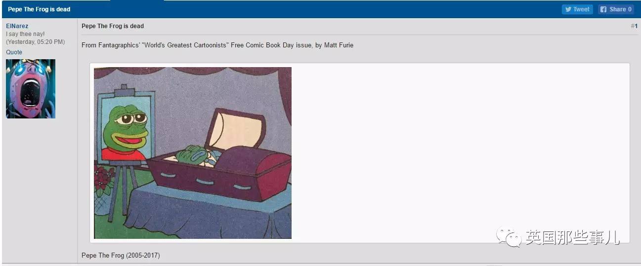 我是死啊我是你妈:不是被白人至上主义绑架,而是被绑架成白人至上主义标志…… pepe一直都只是个meme而已……