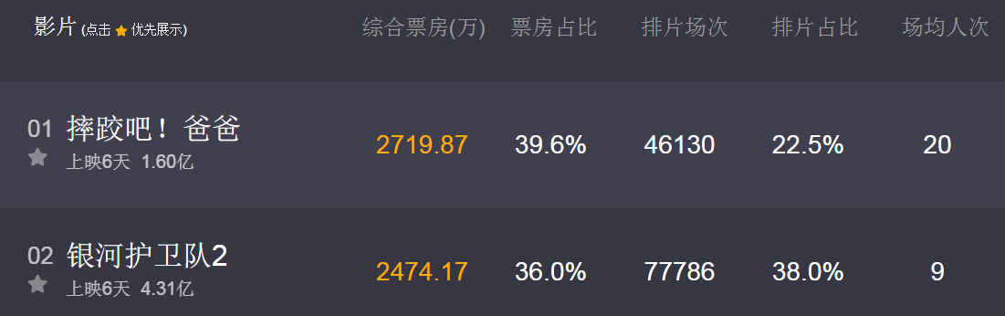 就在今天,电影单日票房,已实现对《银河护卫队2》的反超。