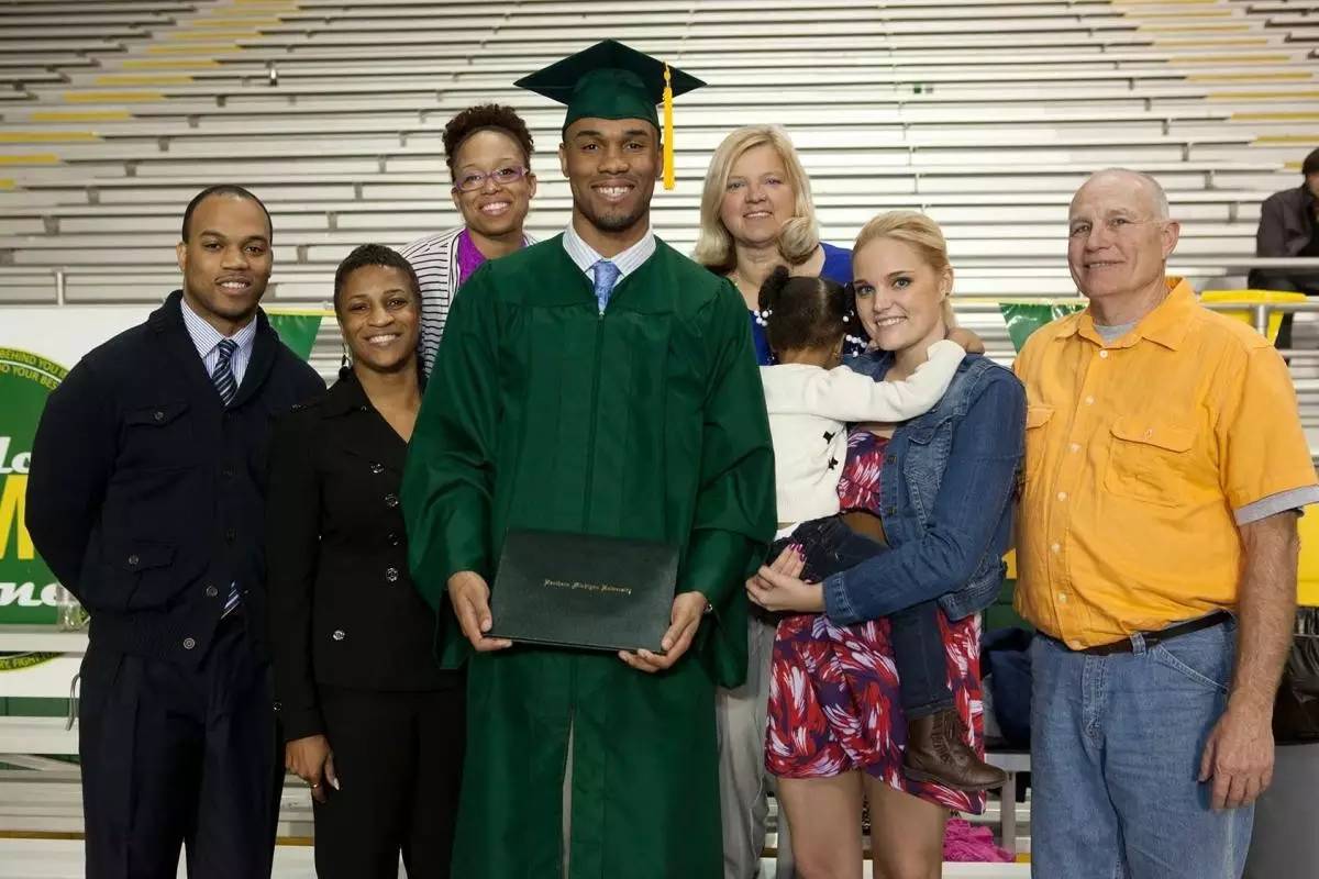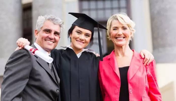 和爸妈一起分享拿到毕业证书的喜悦;