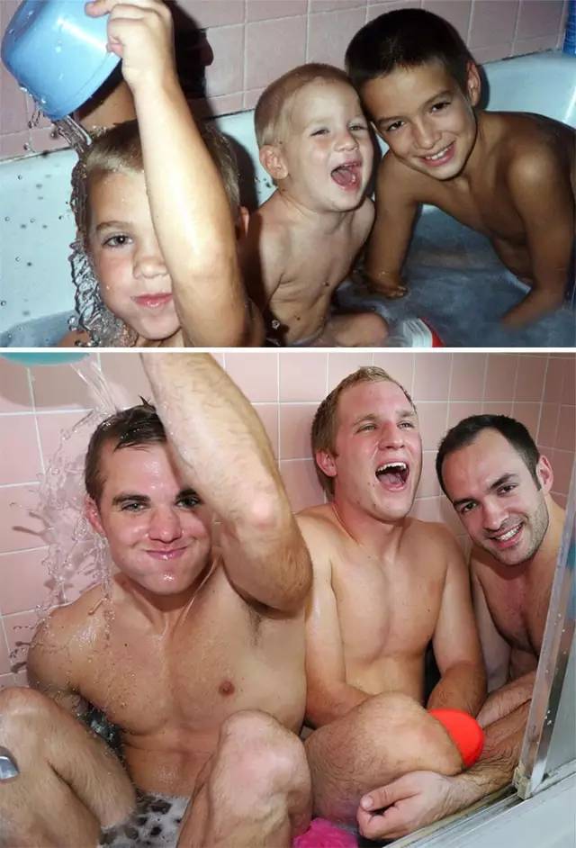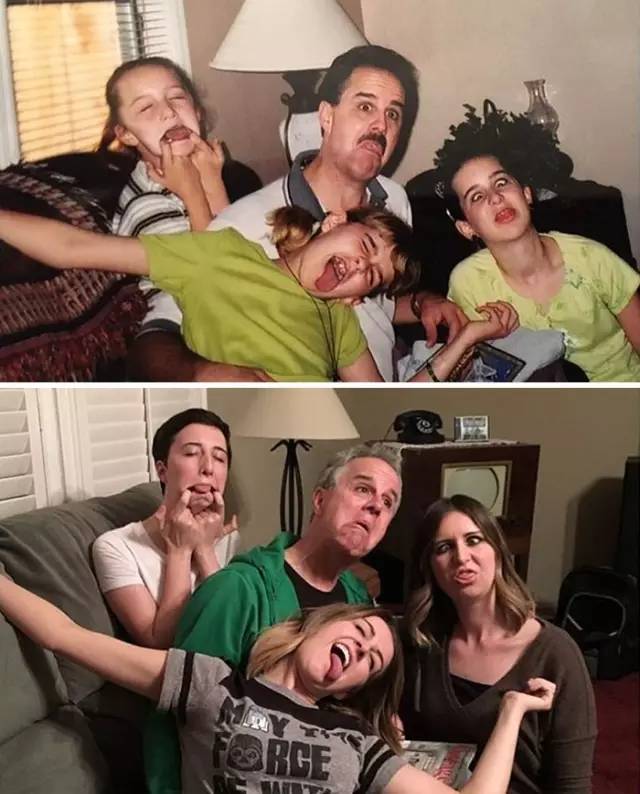 最近国外流行一个“翻拍自己童年照片”的网上活动,网友们找出自己的童年照,然后给照片里的人打电话,把人喊齐以后模仿着童年照,再重新拍一次。