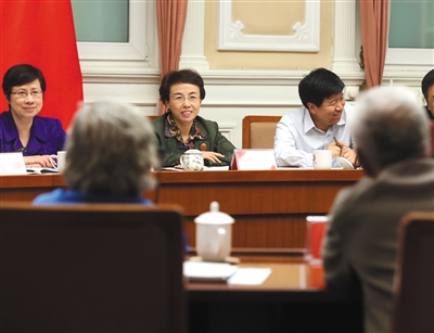 昨日,北京市副市长程红就市场疏解和品质提升相关问题与市民代表座谈。新京报记者 侯少卿 摄