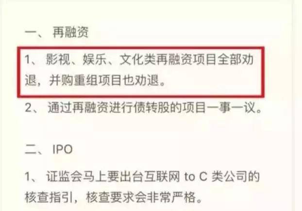 4月中旬,市场上又传出“影视、娱乐、文化类再融资项目全部劝退,并购重组也劝退”的重磅消息,娱乐资本论也从资深投行人士处证实了该消息的存在。