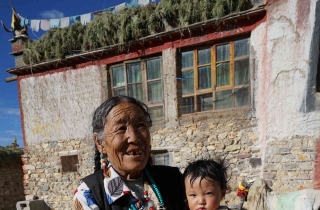 石头村抱小孩的老人