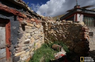 第二天上午,王辉因临时有急事要返回拉萨,便安排我们当晚赶到尼玛县居住,这样在文部南村活动的时间只有半天,吃完早饭,嘎桑永忠带我去看石头房子。因为大多数老房子都因主人不在家,房门无法打开,只有一户有老人在家,总算没有白跑一趟。嘎桑告诉我,这家的石头房子在新房子的里边,说着我们就随这家老妇人进了新房的大门。