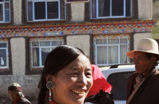 回到拉萨,我第一件事就是将阿里人的服饰以及相关的生活场景照片与文部南村人的照片比对,从石头村妇女的耳坠很快让我联想到阿里妇女的装饰特征。因为古代阿里人崇拜孔雀,所以阿里妇女的耳坠是模仿孔雀的耳坠形状,用小珍珠串成的长串,尽管石头村妇女的耳坠有所变化,但并没有改变基本形状。包括我们在去文部途中遇到的织围裙的妇女,当时我就感觉有点异样,因为藏北牧民是不擅长纺织的,而且她的装饰也不像藏北草原的牧民,这些不正是阿里人的生活习性吗!