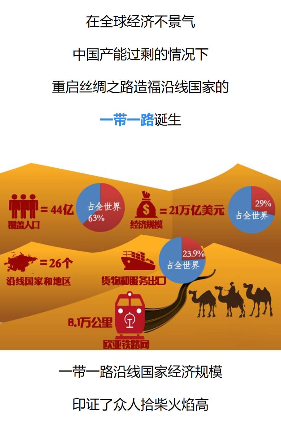 鲁速有话说:一带一路对于亚欧非各国都非常有利,尤其是中国!这更像中国国内的区域合作,只是中国已然无法消化过剩的产能和外汇储备,但是亚欧非国家有需要,而我们对于能源和市场也有强烈的需求,因此一带一路就是一拍即合,这也是为什么一带一路能进行的那么顺利的原因,毕竟谁也不会将机会往外推!