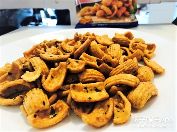打开包装的时候,味道扑面而来,油味和香菜的味道。看了配料表才知道,里面有香菜片……,从包装袋上看起来特别像小时候的零食贝壳酥,曾经还吃过用贝壳酥炒的菜,味道很好。