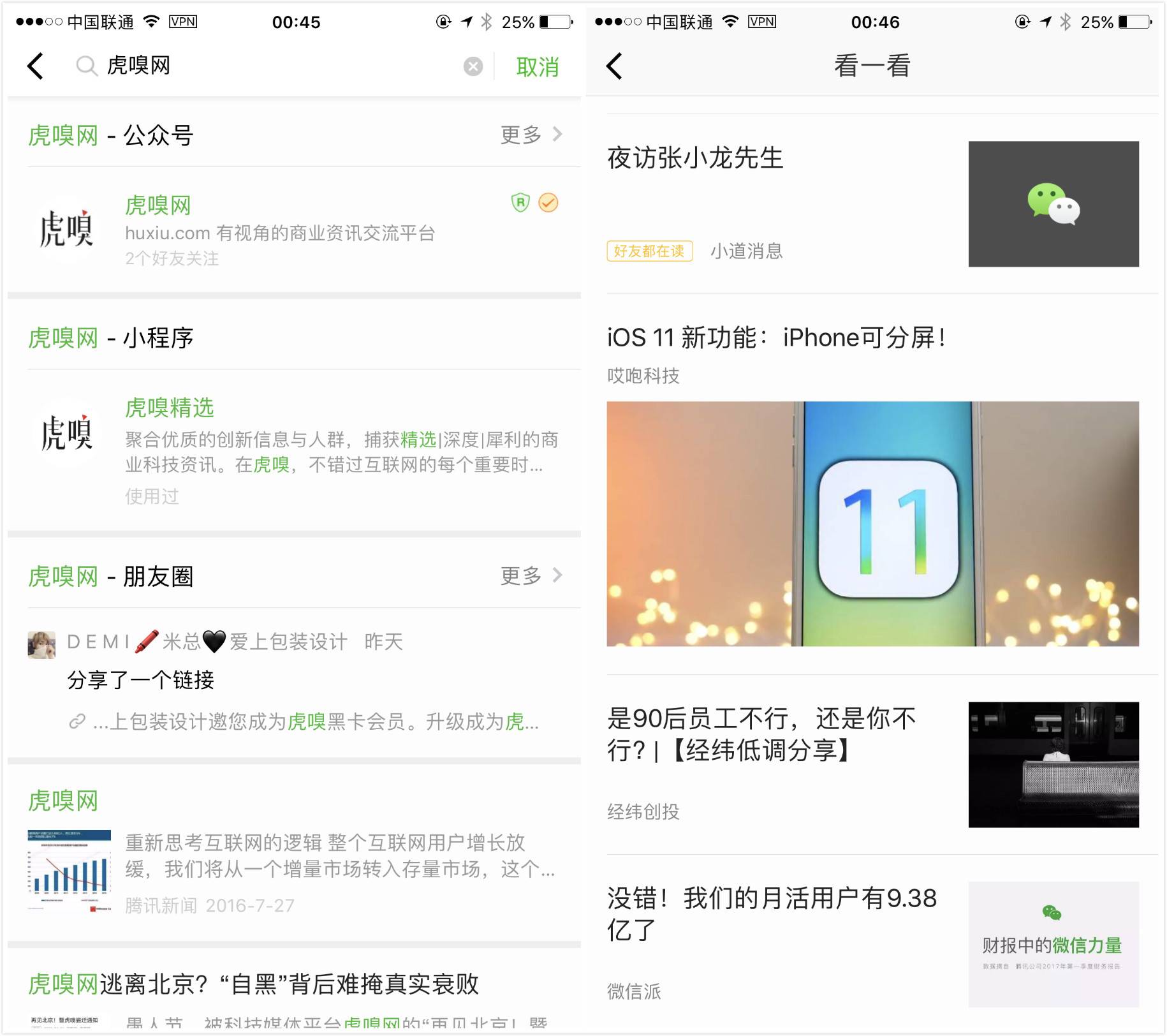插播一个有趣的发现,几位尝鲜体验的用户都在点看「看一看」后,看到了和张小龙相关的文章。