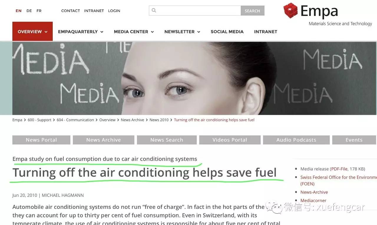 ▲Empa网站上这个标题太科学了:“关空调有助省油”