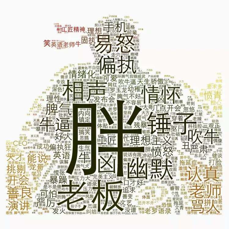 图中既有胖,幽默,理想主义等为公众所知的标签,也有严厉,易怒,挑剔等只有身边人才能体会的特质。可见身为罗永浩的员工,愉悦欢喜常有,但并不总是如此。