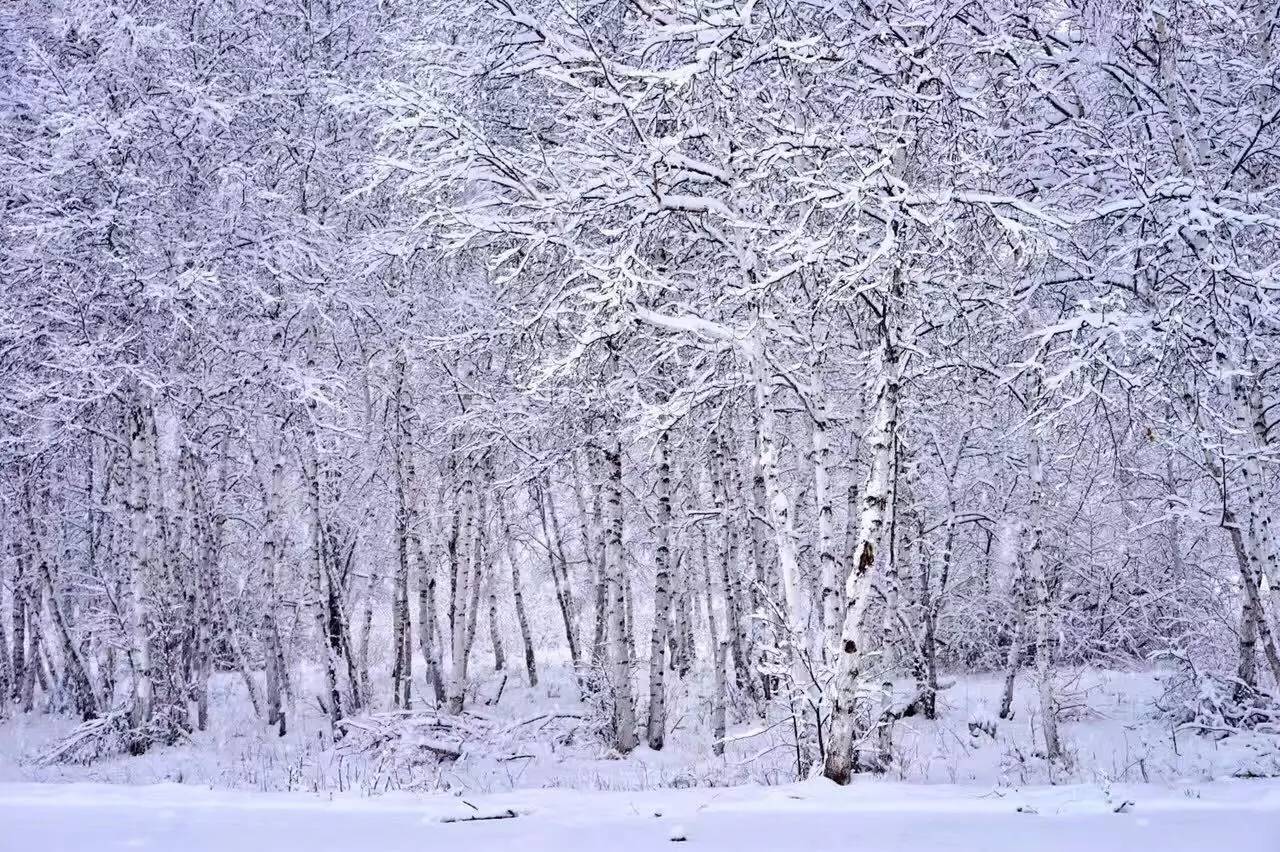 立夏那天,大雪纷飞。中午时,路上的雪已没过了脚脖子,山上的白桦、松树、柳树挂满了雪。