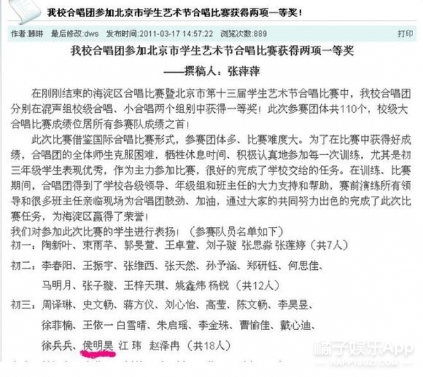 除此之外,侯明昊还是学校合唱团的,从小就一直唱歌,对文体方面还蛮感兴趣的。