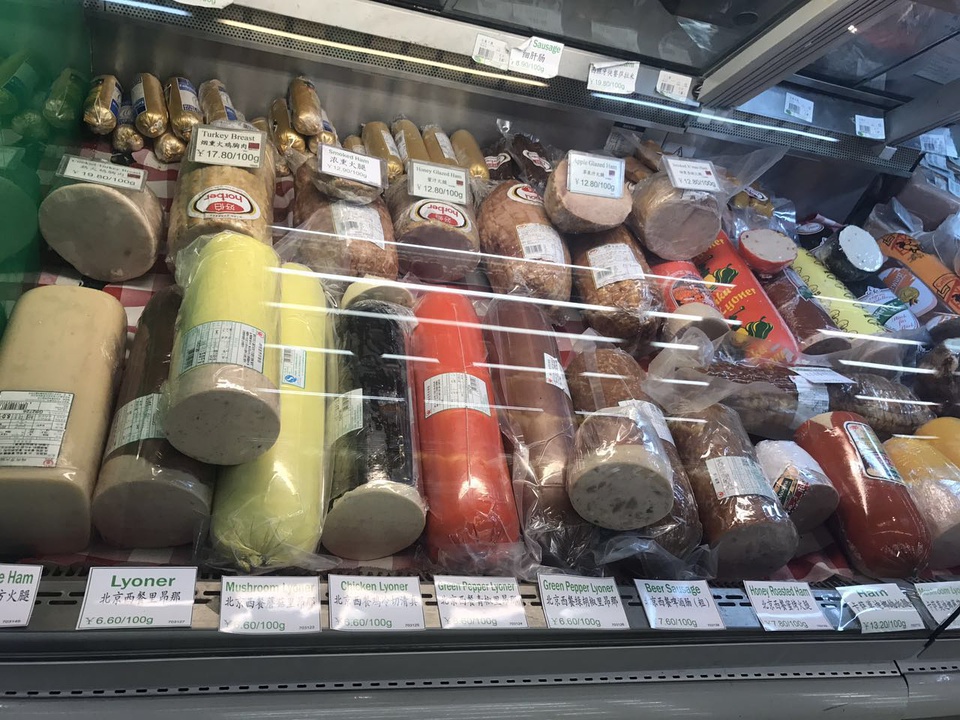 虽然店面不大,但是东西不少,冷鲜区、蔬菜区、调料区、酒区、零食区、cheese区,每个货架都满满当当的,你可以在这里按重量买到各种奶酪和香肠类肉制品,还能按重量去买散装香料。国产肉类极不推荐,这里卫生条件不是很好。