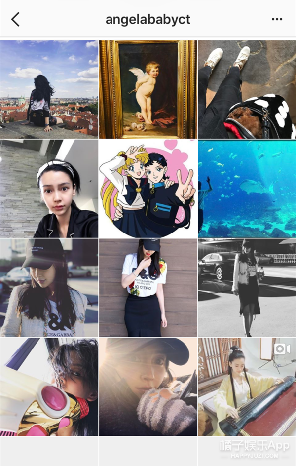 再看看angelababy的微博,和前面几位的风格都一样,都是美美的工作照↓