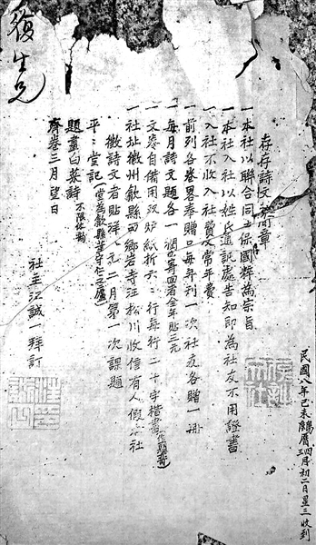 | 安徽歙县《存存诗文社简章》 |