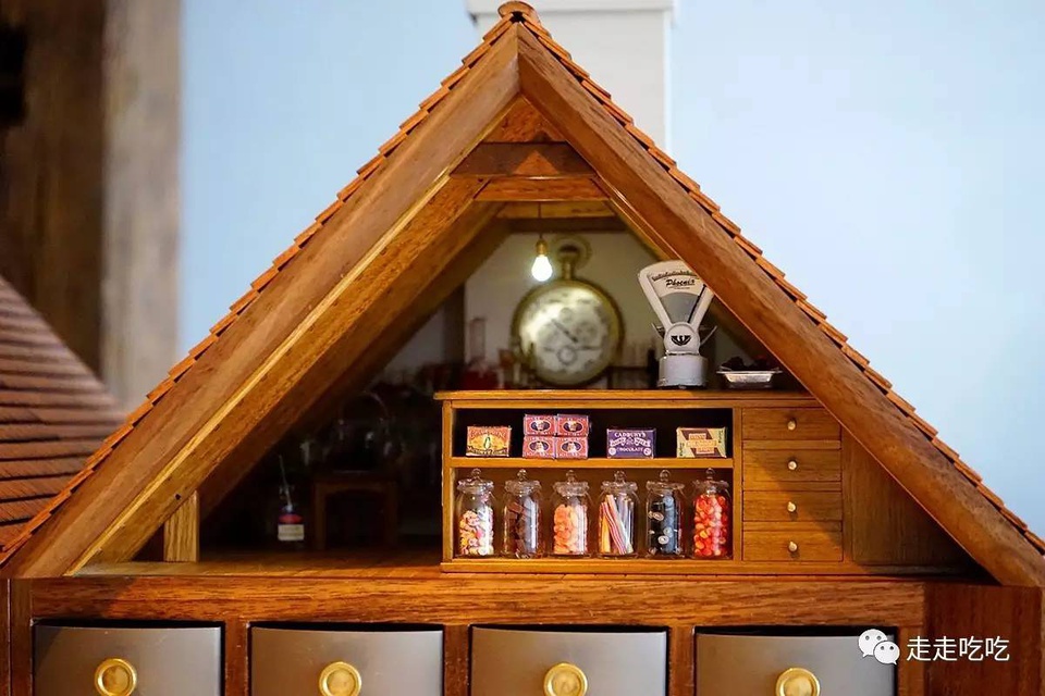 之前提到拼盒子游戏,W小姐获胜,她获得的硬币便是启动糖果屋的钥匙。服务员将硬币塞入开关后,玩偶屋的很多抽屉都动了起来,最后停住的那个便装着我们的糖果。