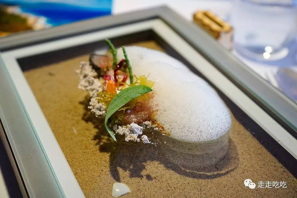 戴上耳机,开始品尝这道《海之声》时才明白一切噱头都是有意义的,无论视觉听觉还是味觉,这都是一道彻彻底底代表海洋的菜品,是一种萦绕在各个感官间的全方位体验。