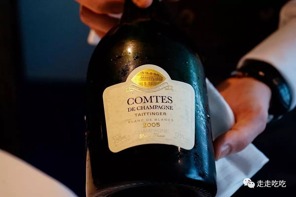 虽然吃吃君酒精过敏,但餐前酒往往还是会点一杯。胖鸭子的藏酒丰富,木制封面的酒单十分厚重,让人眼花缭乱,最后还是听从侍酒师的建议要了一杯Comtes de Champagne 2005。边喝酒边用放大镜看了看菜单,一段童心之旅即将开始了。