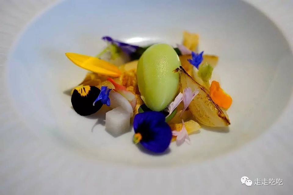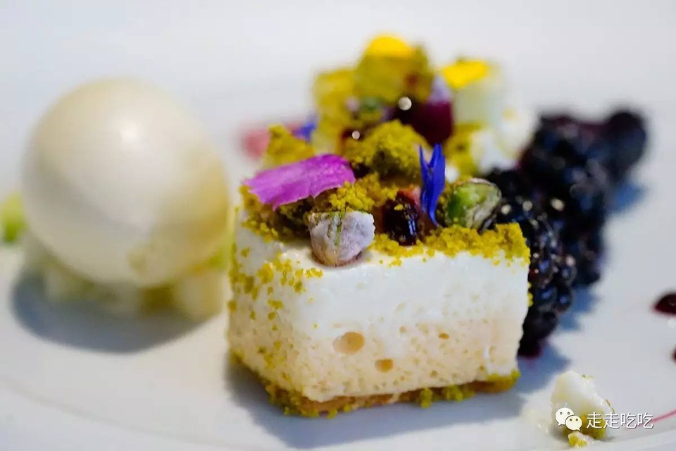 吃得太连贯,导致“甜品”上桌时没拍照便一勺子下去了,幸好可以错位拍摄,也不影响美观。这道“餐中餐”的甜品以柠檬罗勒冰淇淋为主,配以焦糖黑莓、开心果碎及柠檬草等,其实起到的是“前甜品”的作用,令味蕾稍事休息,并清爽口腔。