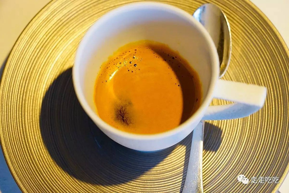 焦糖胖鸭子有多种茶及咖啡可以选择,单吃小甜点有些无聊,我们便一人选了一种咖啡,W小姐选了Auromar黑浓缩,我则选了ZorroV60(zorro指双倍浓缩(doppio)加同等分量的水而成的咖啡饮品)。虽然常年喝咖啡,但确实没有细心研究过,因此听服务员做了简单介绍后便随心所欲地选了。我选的这款有明显的果香,口感偏酸,正好中和糖果的甜腻。