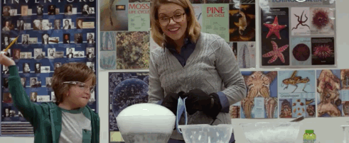 也许因为相信了妈妈的话,也许有很多原因,奥吉慢慢展现出了自己非常有科学头脑的一面,也能做很多很酷的事情——这打动了另一位可爱的小男主。