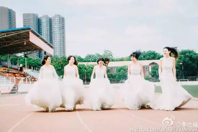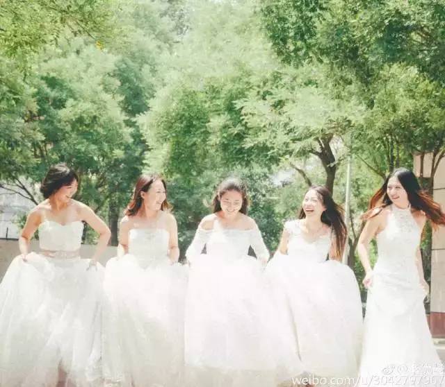 婚纱估计是每个女生最梦寐以求的一套衣服。毕业之后就要各奔东西,那么,趁着还在一起,就一起穿上婚纱吧!
