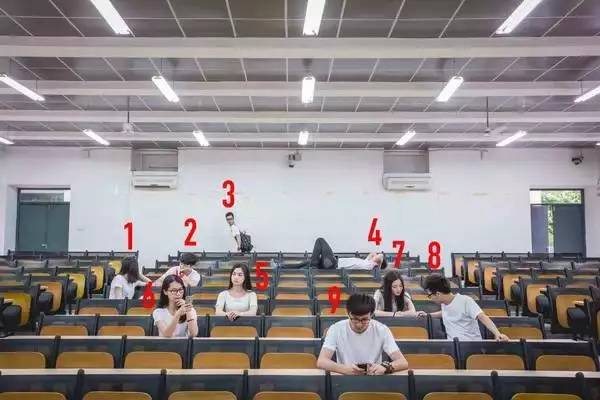 俗话说,独乐乐不如众乐乐,一个人的装逼毕业照会被雷劈。因此,要装一起装,想到一个人拍毕业照要玩多重曝光充人数的场面也挺心塞的,不如叫上几个失恋时一起劈过酒的哥们、无聊时一起讲过全班八卦的姐们一块拍。人数在8~10人为宜,人太少不像毕业照,人太多太难控场。