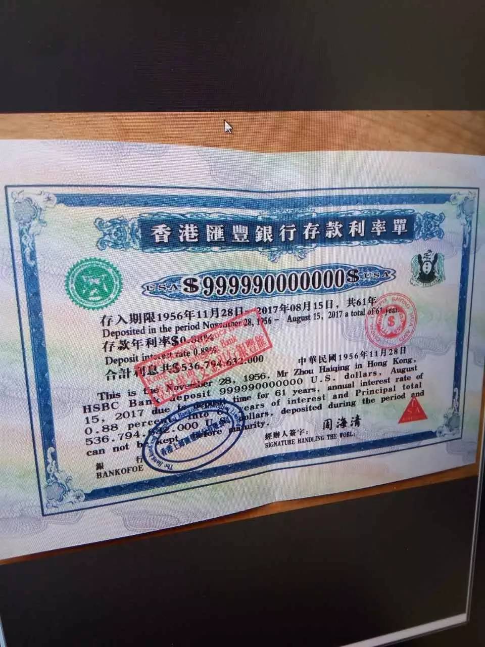 诈骗团伙伪造的境外银行存单