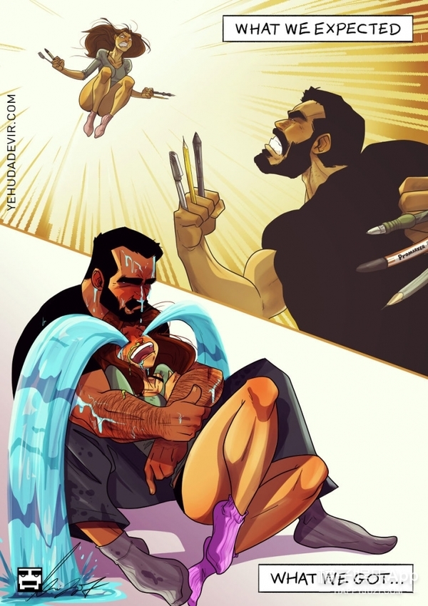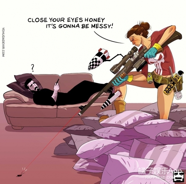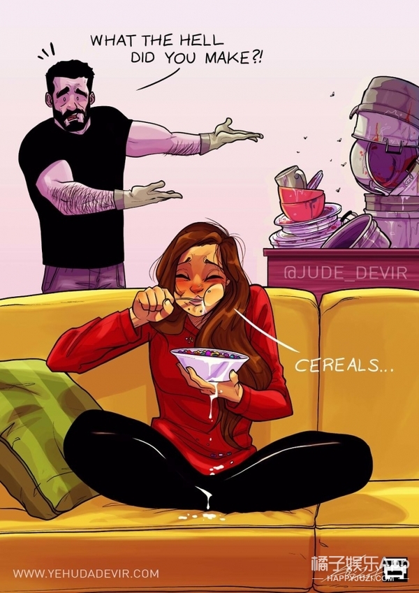 无论嘲笑她捕杀蟑螂的囧样,或者在准备复杂的餐点时摧毁厨房,Yehud的妻子都为他提供了创造所需的一切灵感。总之,他的漫画可爱、幽默,又充满了爱意。
