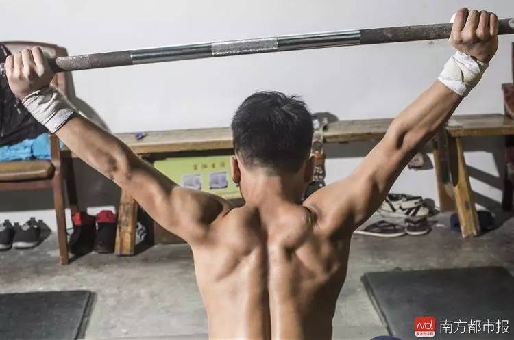 去年加入举重队的他,来这里的最大目的便是尽快练出一身力气,可以回到家乡为爷爷奶奶干农活。