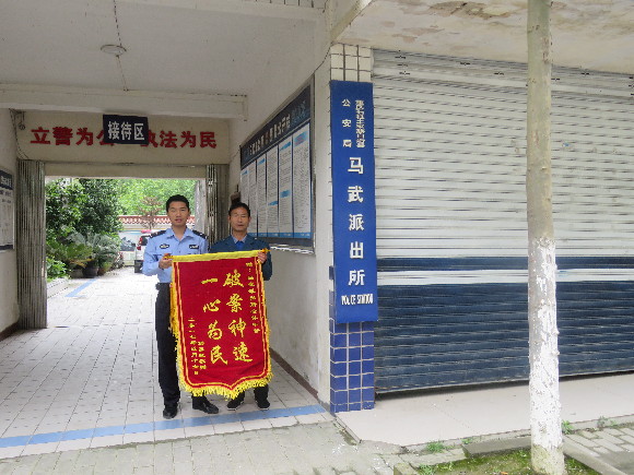为表示对民警神速破案的感谢,杨某特地制作了一面锦旗送到马武所致谢。