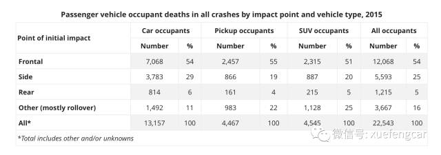▲看看车祸中,什么角度的撞击死的人最多(美国2015年数据)