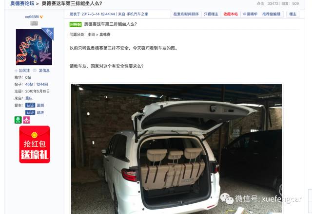 同行是冤家。大众MPV夏朗的车主(或准车主)常常与本田MPV奥德赛的车主(或准车主)互射嘴炮,夏朗车主的一发“重磅炮弹”,就是一张照片:奥德赛的第三排座椅,头枕几乎要贴上尾门。