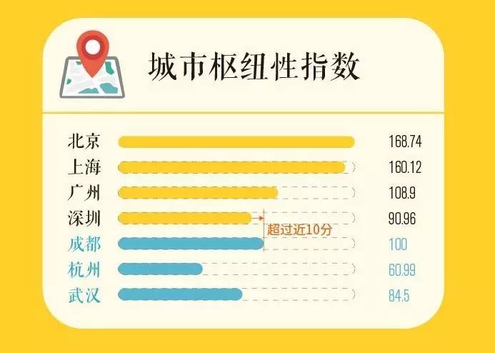 成都的城市枢纽性指数超越了